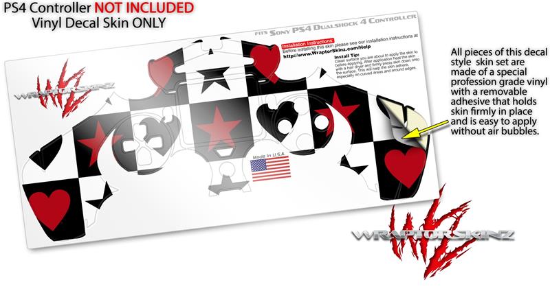 WraptorSkinz Skin compatible with Sony PS4 Dualshock Controller PlayStation 4 Original Slim and Pro Hearts and Stars Red (CONTROLLER NOT INCLUDED)