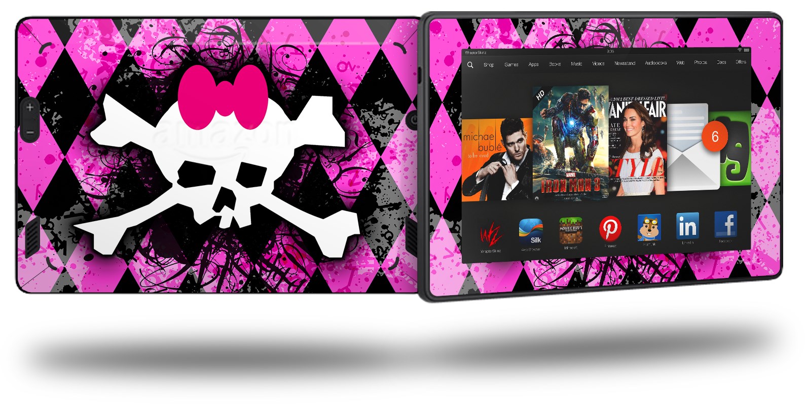 Pink Diamond Skull - Decal Style Skin fits 2013 Amazon Kindle Fire HD 7 inch