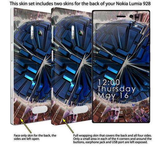 • Decal style vinyl skin covers front, back and side of Nokia Lumia 928 phone.