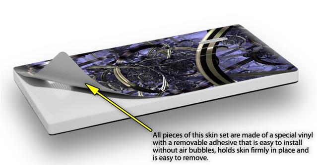 uSkins™ are self adhering vinyl skins that help prevent scratches and look great doing it. Unlike bulky silicon, plastic or metal cases and faceplates, uSkins are designed to be thin and very tough. uSkins are a composite of two layers of commercial grade materials. The bottom layer is a soft, flexible vinyl with a special removable adhesive that is easily positioned, applied without air bubbles, and effortlessly removed without leaving a sticky residue. Next we print the bottom layer with UV protected, fade resistant inks that deliver superb photo quality designs in vibrant colors. Finally we bond a professional grade laminate over the entire skin adding a glossy protective finish.
