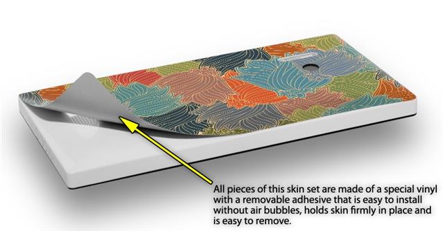 uSkins™ are self adhering vinyl skins that help prevent scratches and look great doing it. Unlike bulky silicon, plastic or metal cases and faceplates, uSkins are designed to be thin and very tough. uSkins are a composite of two layers of commercial grade materials. The bottom layer is a soft, flexible vinyl with a special removable adhesive that is easily positioned, applied without air bubbles, and effortlessly removed without leaving a sticky residue. Next we print the bottom layer with UV protected, fade resistant inks that deliver superb photo quality designs in vibrant colors. Finally we bond a professional grade laminate over the entire skin adding a glossy protective finish.