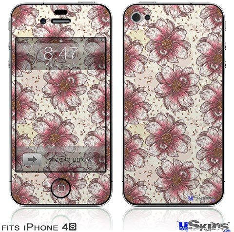 iPhone 4S Decal Style Vinyl Skin - Flowers Pattern 23