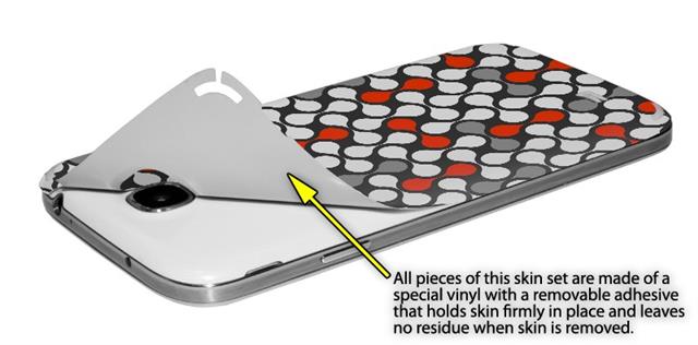 • Decal style vinyl skin covers front and back of Samsung Galaxy S4 phone.