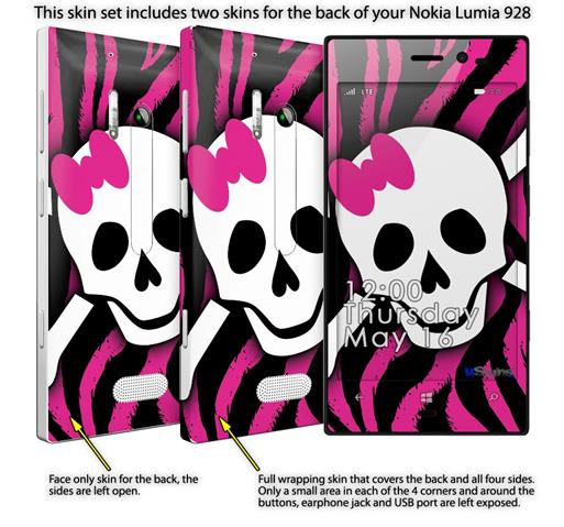 Pink Zebra Skull - Decal Style Skin (fits Nokia Lumia 928)