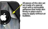 uSkins™ are self adhering vinyl decal style skins and are a great way to add a new look to your protective case. uSkins are a composite of two layers of commercial grade materials. The bottom layer is a soft, flexible vinyl with a special removable adhesive that is easily positioned, applied without air bubbles. Next we print the bottom layer with UV protected, fade resistant inks that deliver superb photo quality designs in vibrant colors. Finally we bond a professional grade laminate over the entire skin adding a glossy protective finish.