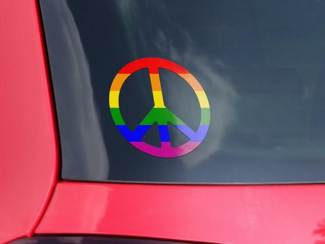 Rainbow Stripes - Peace Sign Car Window Decal 6 x 6 inches