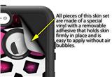 uSkins™ are self adhering vinyl decal style skins and are a great way to add a new look to your existing protective case. uSkins are a composite of two layers of commercial grade materials. The bottom layer is a soft, flexible vinyl with a special removable adhesive that is easily positioned, applied without air bubbles. Next we print the bottom layer with UV protected, fade resistant inks that deliver superb photo quality designs in vibrant colors. Finally we bond a professional grade laminate over the entire skin adding a glossy protective finish.