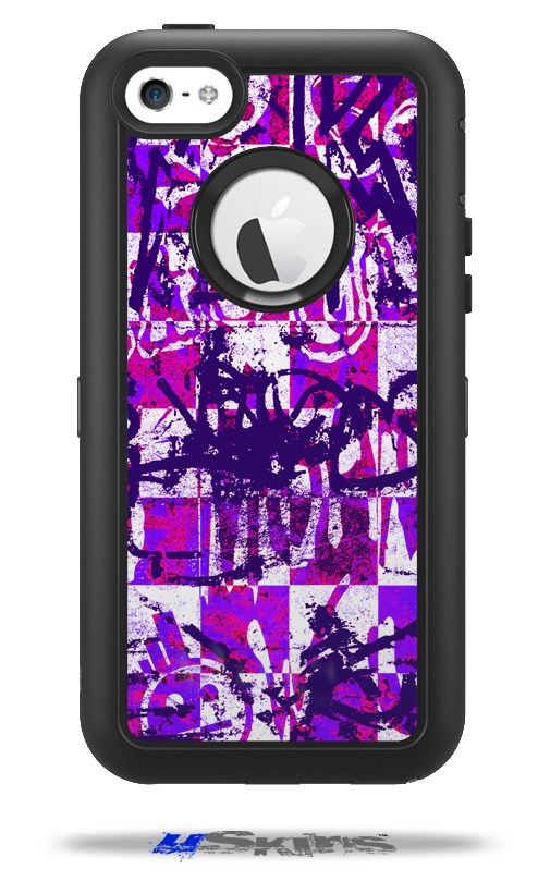 Purple Checker Graffiti - Decal Style Vinyl Skin fits Otterbox Defender iPhone 5C Case (CASE SOLD SEPARATELY)