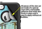 uSkins™ are self adhering vinyl decal style skins and are a great way to add a new look to your existing protective case. uSkins are a composite of two layers of commercial grade materials. The bottom layer is a soft, flexible vinyl with a special removable adhesive that is easily positioned, applied without air bubbles. Next we print the bottom layer with UV protected, fade resistant inks that deliver superb photo quality designs in vibrant colors. Finally we bond a professional grade laminate over the entire skin adding a glossy protective finish.