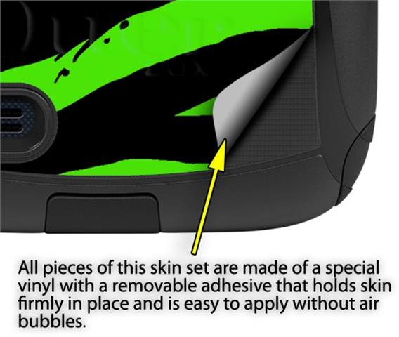 uSkins™ are self adhering vinyl decal style skins and are a great way to add a new look to your protective case. uSkins are a composite of two layers of commercial grade materials. The bottom layer is a soft, flexible vinyl with a special removable adhesive that is easily positioned, applied without air bubbles. Next we print the bottom layer with UV protected, fade resistant inks that deliver superb photo quality designs in vibrant colors. Finally we bond a professional grade laminate over the entire skin adding a glossy protective finish.