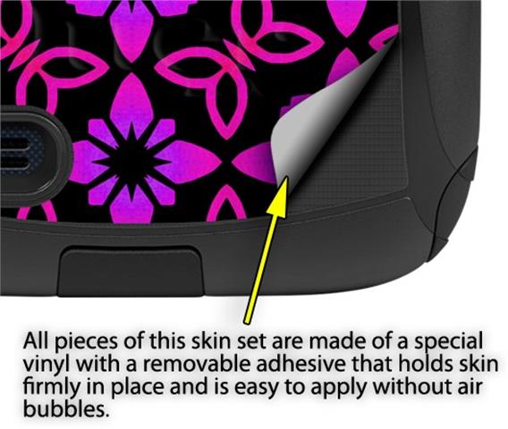 uSkins™ are self adhering vinyl decal style skins and are a great way to add a new look to your protective case. uSkins are a composite of two layers of commercial grade materials. The bottom layer is a soft, flexible vinyl with a special removable adhesive that is easily positioned, applied without air bubbles. Next we print the bottom layer with UV protected, fade resistant inks that deliver superb photo quality designs in vibrant colors. Finally we bond a professional grade laminate over the entire skin adding a glossy protective finish.