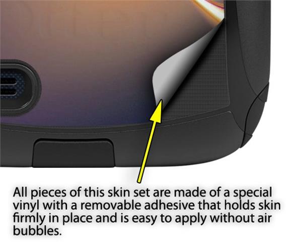 uSkins™ are self adhering vinyl decal style skins and are a great way to add a new look to your protective case. uSkins are a composite of two layers of commercial grade materials. The bottom layer is a soft, flexible vinyl with a special removable adhesive that is easily positioned, applied without air bubbles. Next we print the bottom layer with UV protected, fade resistant inks that deliver superb photo quality designs in vibrant colors. Finally we bond a professional grade laminate over the entire skin adding a glossy protective finish.