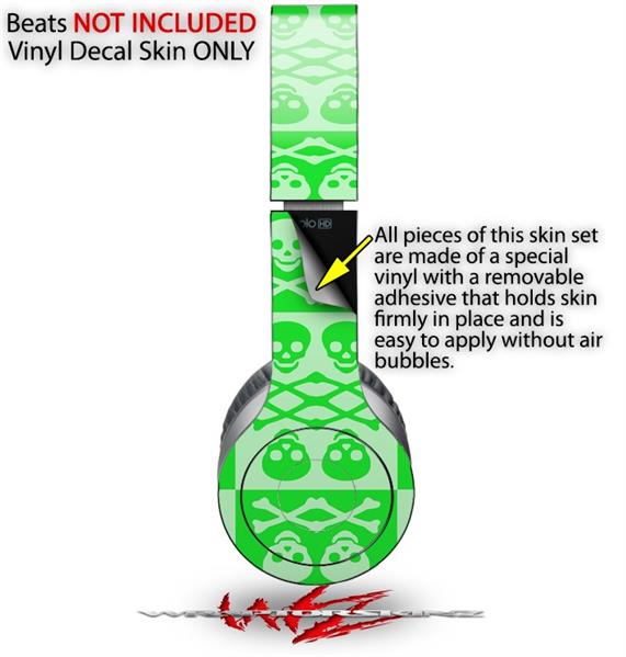 WraptorSkinz Skin Decal Wrap compatible with Beats Solo HD (Original) Skull And Crossbones Pattern Green (HEADPHONES NOT INCLUDED)