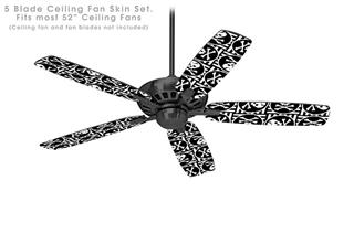Skull Patch Pattern Bw - Ceiling Fan Skin Kit fits most 52 inch fans (FAN and BLADES SOLD SEPARATELY)
