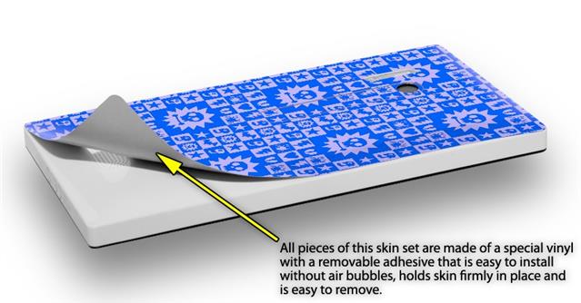 uSkins™ are self adhering vinyl skins that help prevent scratches and look great doing it. Unlike bulky silicon, plastic or metal cases and faceplates, uSkins are designed to be thin and very tough. uSkins are a composite of two layers of commercial grade materials. The bottom layer is a soft, flexible vinyl with a special removable adhesive that is easily positioned, applied without air bubbles, and effortlessly removed without leaving a sticky residue. Next we print the bottom layer with UV protected, fade resistant inks that deliver superb photo quality designs in vibrant colors. Finally we bond a professional grade laminate over the entire skin adding a glossy protective finish.