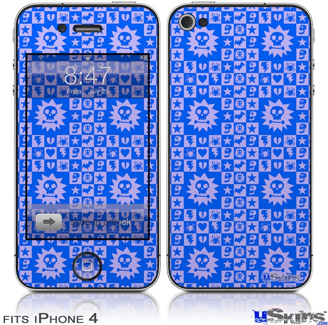 iPhone 4 Decal Style Vinyl Skin - Gothic Punk Pattern Blue (DOES NOT fit newer iPhone 4S)