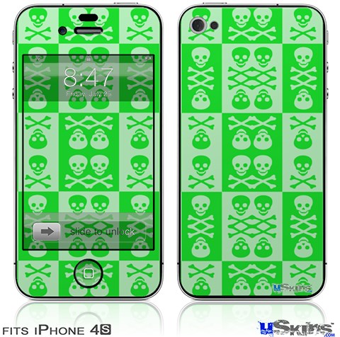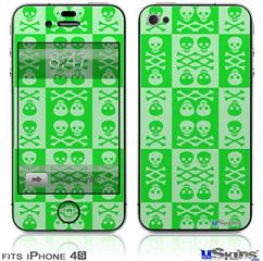 iPhone 4S Decal Style Vinyl Skin - Skull And Crossbones Pattern Green