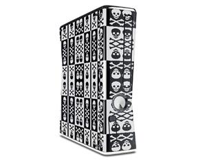 Skull And Crossbones Pattern Bw Decal Style Skin for XBOX 360 Slim Vertical