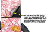 WraptorSkinz® are self adhering vinyl skins that help prevent scratches and look great doing it. Unlike bulky silicon, plastic or metal cases and faceplates, WraptorSkinz® are designed to be thin and very tough. WraptorSkinz® are a composite of two layers of commercial grade materials. The bottom layer is a soft, flexible vinyl with a special removable adhesive that is easily positioned, applied without air bubbles. Next we print the bottom layer with UV protected, fade resistant inks that deliver superb photo quality designs in vibrant colors. Finally we bond a professional grade laminate over the entire skin adding a glossy protective finish.