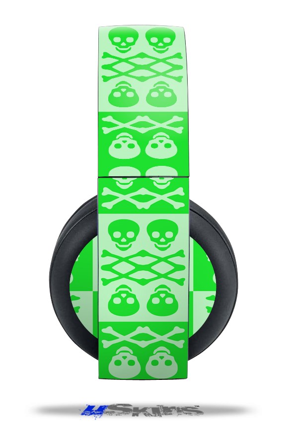 Vinyl Decal Skin Wrap compatible with Original Sony PlayStation 4 Gold Wireless Headphones Skull And Crossbones Pattern Green (PS4 HEADPHONES NOT INCLUDED)