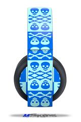 Vinyl Decal Skin Wrap compatible with Original Sony PlayStation 4 Gold Wireless Headphones Skull And Crossbones Pattern Blue (PS4 HEADPHONES NOT INCLUDED)