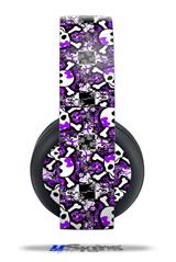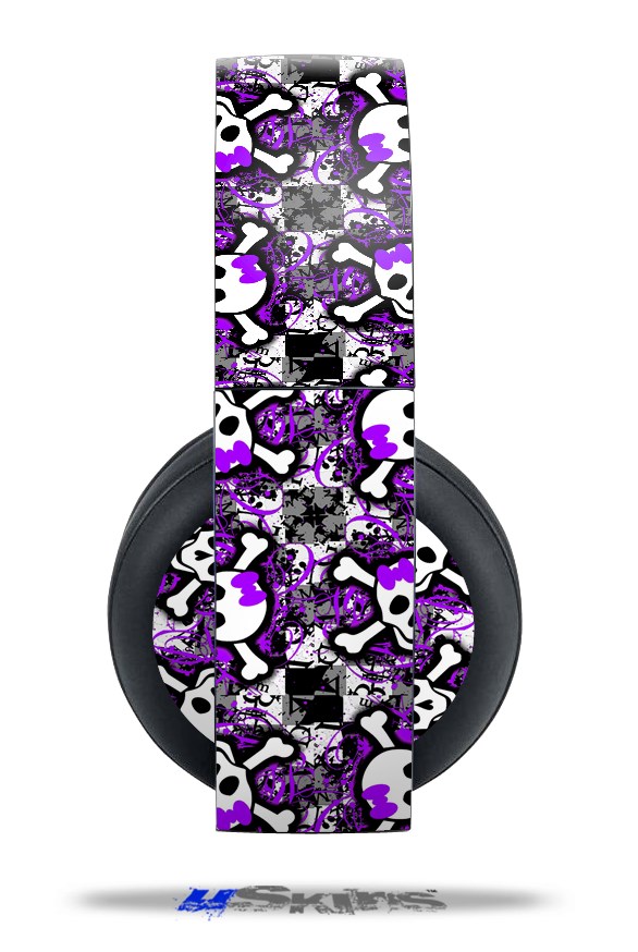Vinyl Decal Skin Wrap compatible with Original Sony PlayStation 4 Gold Wireless Headphones Splatter Girly Skull Purple (PS4 HEADPHONES NOT INCLUDED)