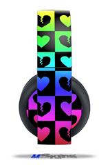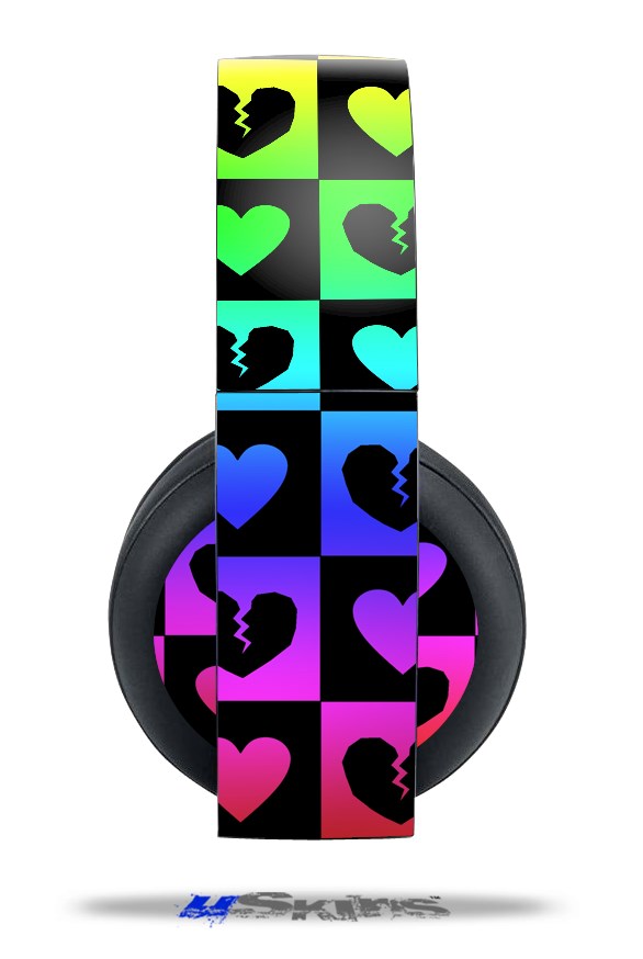 Vinyl Decal Skin Wrap compatible with Original Sony PlayStation 4 Gold Wireless Headphones Love Heart Checkers Rainbow (PS4 HEADPHONES NOT INCLUDED)