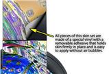 WraptorSkinz® are self adhering vinyl skins that help prevent scratches and look great doing it. Unlike bulky silicon, plastic or metal cases and faceplates, WraptorSkinz® are designed to be thin and very tough. WraptorSkinz® are a composite of two layers of commercial grade materials. The bottom layer is a soft, flexible vinyl with a special removable adhesive that is easily positioned, applied without air bubbles. Next we print the bottom layer with UV protected, fade resistant inks that deliver superb photo quality designs in vibrant colors. Finally we bond a professional grade laminate over the entire skin adding a glossy protective finish.