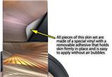 WraptorSkinz® are self adhering vinyl skins that help prevent scratches and look great doing it. Unlike bulky silicon, plastic or metal cases and faceplates, WraptorSkinz® are designed to be thin and very tough. WraptorSkinz® are a composite of two layers of commercial grade materials. The bottom layer is a soft, flexible vinyl with a special removable adhesive that is easily positioned, applied without air bubbles. Next we print the bottom layer with UV protected, fade resistant inks that deliver superb photo quality designs in vibrant colors. Finally we bond a professional grade laminate over the entire skin adding a glossy protective finish.