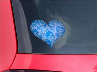 Skull Sketches Blue - I Heart Love Car Window Decal 6.5 x 5.5 inches
