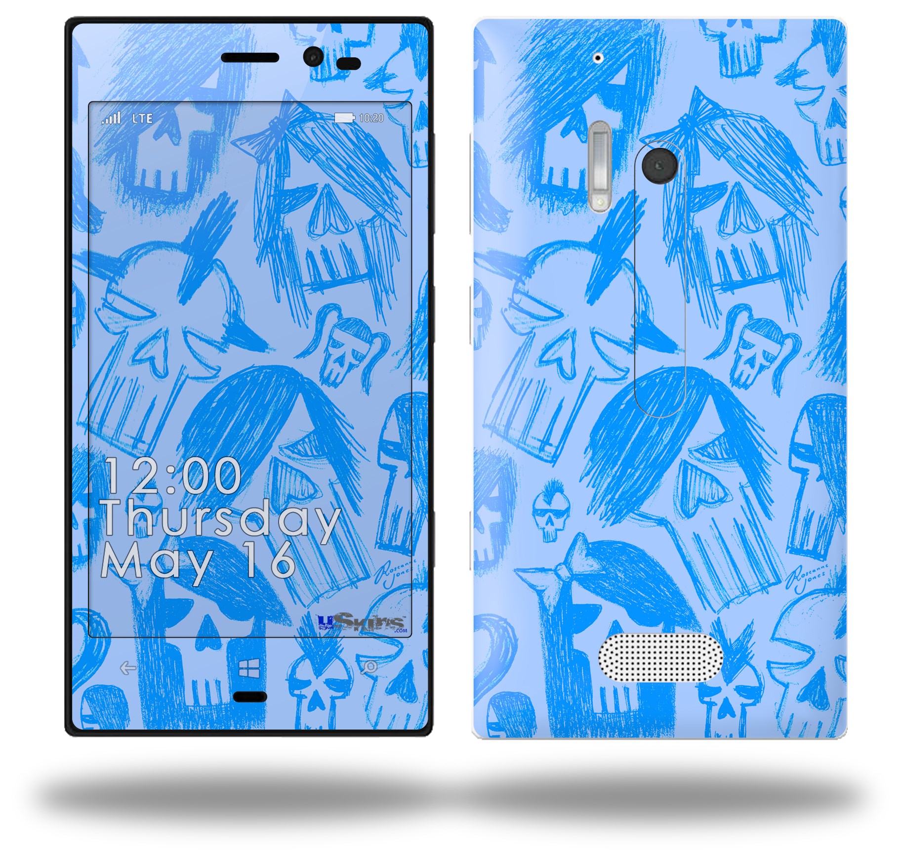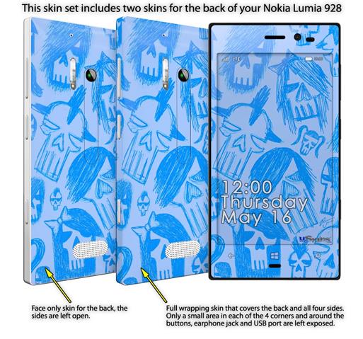 Skull Sketches Blue - Decal Style Skin (fits Nokia Lumia 928)