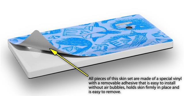 uSkins™ are self adhering vinyl skins that help prevent scratches and look great doing it. Unlike bulky silicon, plastic or metal cases and faceplates, uSkins are designed to be thin and very tough. uSkins are a composite of two layers of commercial grade materials. The bottom layer is a soft, flexible vinyl with a special removable adhesive that is easily positioned, applied without air bubbles, and effortlessly removed without leaving a sticky residue. Next we print the bottom layer with UV protected, fade resistant inks that deliver superb photo quality designs in vibrant colors. Finally we bond a professional grade laminate over the entire skin adding a glossy protective finish.