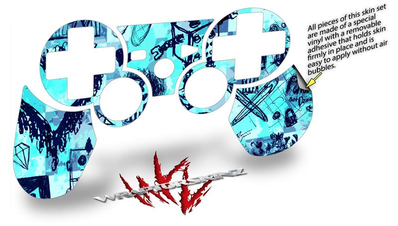 Sony PS3 Controller Decal Style Skin - Scene Kid Sketches Blue (CONTROLLER NOT INCLUDED)