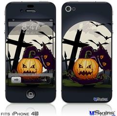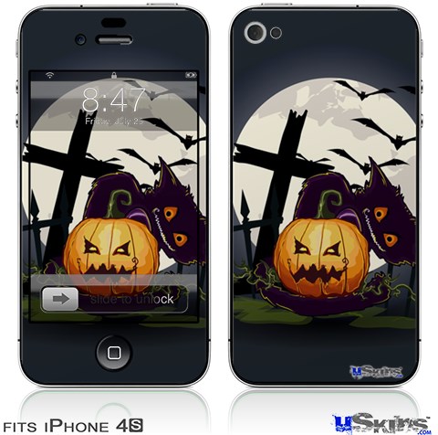 iPhone 4S Decal Style Vinyl Skin - Halloween Jack O Lantern and Cemetery Kitty Cat