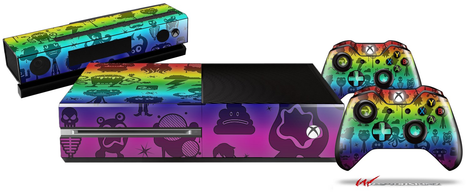 Cute Rainbow Monsters - Holiday Bundle Decal Style Skin fits XBOX One Console Original, Kinect and 2 Controllers (XBOX SYSTEM NOT INCLUDED)