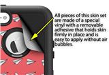 uSkins™ are self adhering vinyl decal style skins and are a great way to add a new look to your existing protective case. uSkins are a composite of two layers of commercial grade materials. The bottom layer is a soft, flexible vinyl with a special removable adhesive that is easily positioned, applied without air bubbles. Next we print the bottom layer with UV protected, fade resistant inks that deliver superb photo quality designs in vibrant colors. Finally we bond a professional grade laminate over the entire skin adding a glossy protective finish.