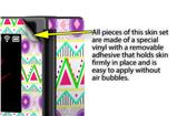 WraptoSkinz™ skins are superb photo quality designs and vibrant colors printed with special Eco-Friendly, fade resistant inks. Our skins are self-adhering flexible vinyl skins that helps prevent scratches. Made of composite, multi-layered commercial grade materials. The bottom layer is made with a special removable adhesive that is easily positioned and applied without air bubbles. We print your design on the bottom layer then bond a professional grade laminate over the entire skin adding a glossy protective finish.