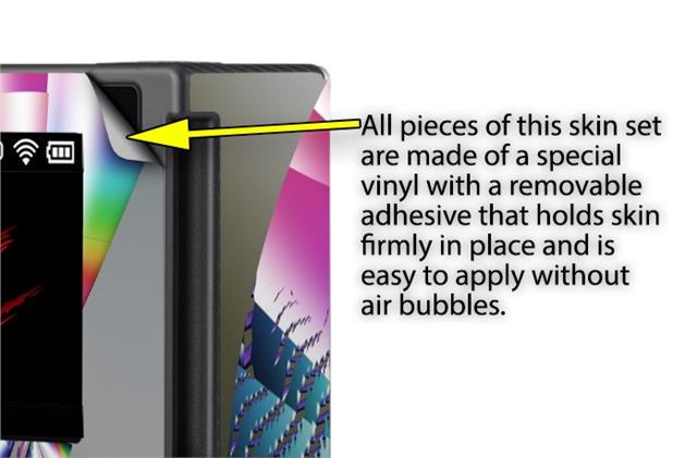 WraptoSkinz™ skins are superb photo quality designs and vibrant colors printed with special Eco-Friendly, fade resistant inks. Our skins are self-adhering flexible vinyl skins that helps prevent scratches. Made of composite, multi-layered commercial grade materials. The bottom layer is made with a special removable adhesive that is easily positioned and applied without air bubbles. We print your design on the bottom layer then bond a professional grade laminate over the entire skin adding a glossy protective finish.