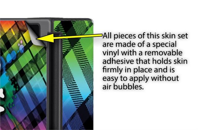 WraptoSkinz™ skins are superb photo quality designs and vibrant colors printed with special Eco-Friendly, fade resistant inks. Our skins are self-adhering flexible vinyl skins that helps prevent scratches. Made of composite, multi-layered commercial grade materials. The bottom layer is made with a special removable adhesive that is easily positioned and applied without air bubbles. We print your design on the bottom layer then bond a professional grade laminate over the entire skin adding a glossy protective finish.