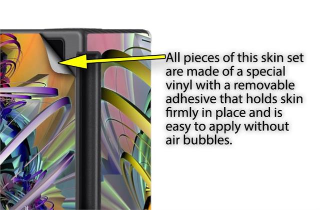 WraptoSkinz™ skins are superb photo quality designs and vibrant colors printed with special Eco-Friendly, fade resistant inks. Our skins are self-adhering flexible vinyl skins that helps prevent scratches. Made of composite, multi-layered commercial grade materials. The bottom layer is made with a special removable adhesive that is easily positioned and applied without air bubbles. We print your design on the bottom layer then bond a professional grade laminate over the entire skin adding a glossy protective finish.