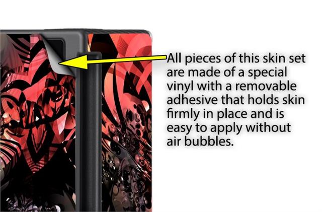 WraptoSkinz™ skins are superb photo quality designs and vibrant colors printed with special Eco-Friendly, fade resistant inks. Our skins are self-adhering flexible vinyl skins that helps prevent scratches. Made of composite, multi-layered commercial grade materials. The bottom layer is made with a special removable adhesive that is easily positioned and applied without air bubbles. We print your design on the bottom layer then bond a professional grade laminate over the entire skin adding a glossy protective finish.