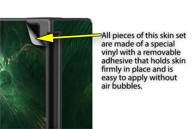 WraptoSkinz™ skins are superb photo quality designs and vibrant colors printed with special Eco-Friendly, fade resistant inks. Our skins are self-adhering flexible vinyl skins that helps prevent scratches. Made of composite, multi-layered commercial grade materials. The bottom layer is made with a special removable adhesive that is easily positioned and applied without air bubbles. We print your design on the bottom layer then bond a professional grade laminate over the entire skin adding a glossy protective finish.