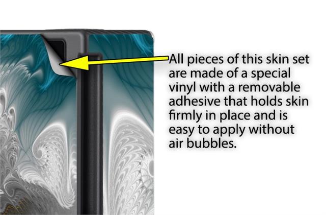 WraptoSkinz™ skins are superb photo quality designs and vibrant colors printed with special Eco-Friendly, fade resistant inks. Our skins are self-adhering flexible vinyl skins that helps prevent scratches. Made of composite, multi-layered commercial grade materials. The bottom layer is made with a special removable adhesive that is easily positioned and applied without air bubbles. We print your design on the bottom layer then bond a professional grade laminate over the entire skin adding a glossy protective finish.