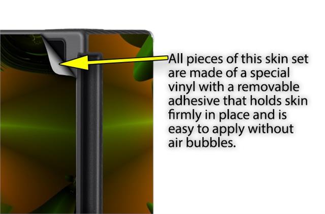 WraptoSkinz™ skins are superb photo quality designs and vibrant colors printed with special Eco-Friendly, fade resistant inks. Our skins are self-adhering flexible vinyl skins that helps prevent scratches. Made of composite, multi-layered commercial grade materials. The bottom layer is made with a special removable adhesive that is easily positioned and applied without air bubbles. We print your design on the bottom layer then bond a professional grade laminate over the entire skin adding a glossy protective finish.