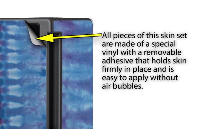 WraptoSkinz™ skins are superb photo quality designs and vibrant colors printed with special Eco-Friendly, fade resistant inks. Our skins are self-adhering flexible vinyl skins that helps prevent scratches. Made of composite, multi-layered commercial grade materials. The bottom layer is made with a special removable adhesive that is easily positioned and applied without air bubbles. We print your design on the bottom layer then bond a professional grade laminate over the entire skin adding a glossy protective finish.