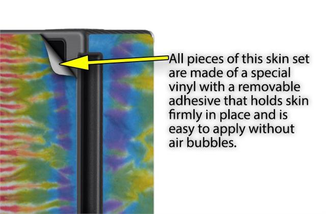 WraptoSkinz™ skins are superb photo quality designs and vibrant colors printed with special Eco-Friendly, fade resistant inks. Our skins are self-adhering flexible vinyl skins that helps prevent scratches. Made of composite, multi-layered commercial grade materials. The bottom layer is made with a special removable adhesive that is easily positioned and applied without air bubbles. We print your design on the bottom layer then bond a professional grade laminate over the entire skin adding a glossy protective finish.