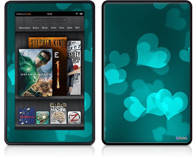 Amazon Kindle Fire (Original) Decal Style Skin - Bokeh Hearts Neon Teal