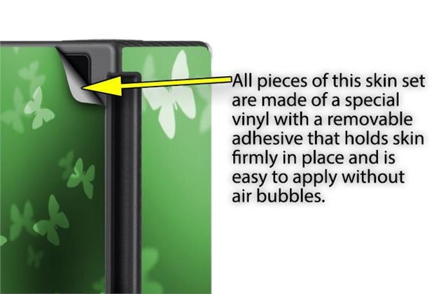 WraptoSkinz™ skins are superb photo quality designs and vibrant colors printed with special Eco-Friendly, fade resistant inks. Our skins are self-adhering flexible vinyl skins that helps prevent scratches. Made of composite, multi-layered commercial grade materials. The bottom layer is made with a special removable adhesive that is easily positioned and applied without air bubbles. We print your design on the bottom layer then bond a professional grade laminate over the entire skin adding a glossy protective finish.