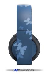 Vinyl Decal Skin Wrap compatible with Original Sony PlayStation 4 Gold Wireless Headphones Bokeh Butterflies Blue (PS4 HEADPHONES NOT INCLUDED)