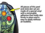 uSkins™ are self adhering vinyl skins that help prevent scratches and look great doing it. Unlike bulky silicon and plastic covers, uSkins are designed to be thin and very tough. uSkins are a composite of two layers of commercial grade materials. The bottom layer is a soft, flexible vinyl with a special removable adhesive that is easily positioned and applied without air bubbles. The bottom layer print with special UV protected, fade resistant inks that deliver superb photo quality designs in vibrant colors. Finally we bond a professional grade laminate over the entire skin adding a glossy protective finish.